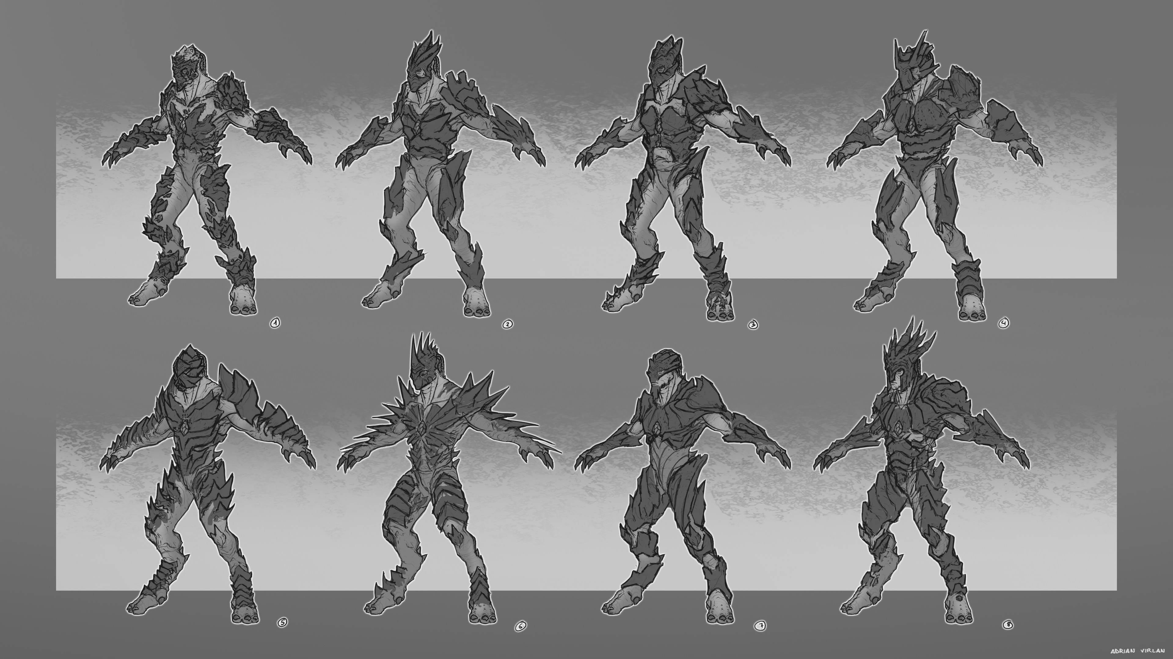 I have included some early armor exploration designs and an example of color scheme exploration in this Urien Soldier character design I created for Sons of Dawn, a personal project I'm working on with my friend Kiko Blasco.